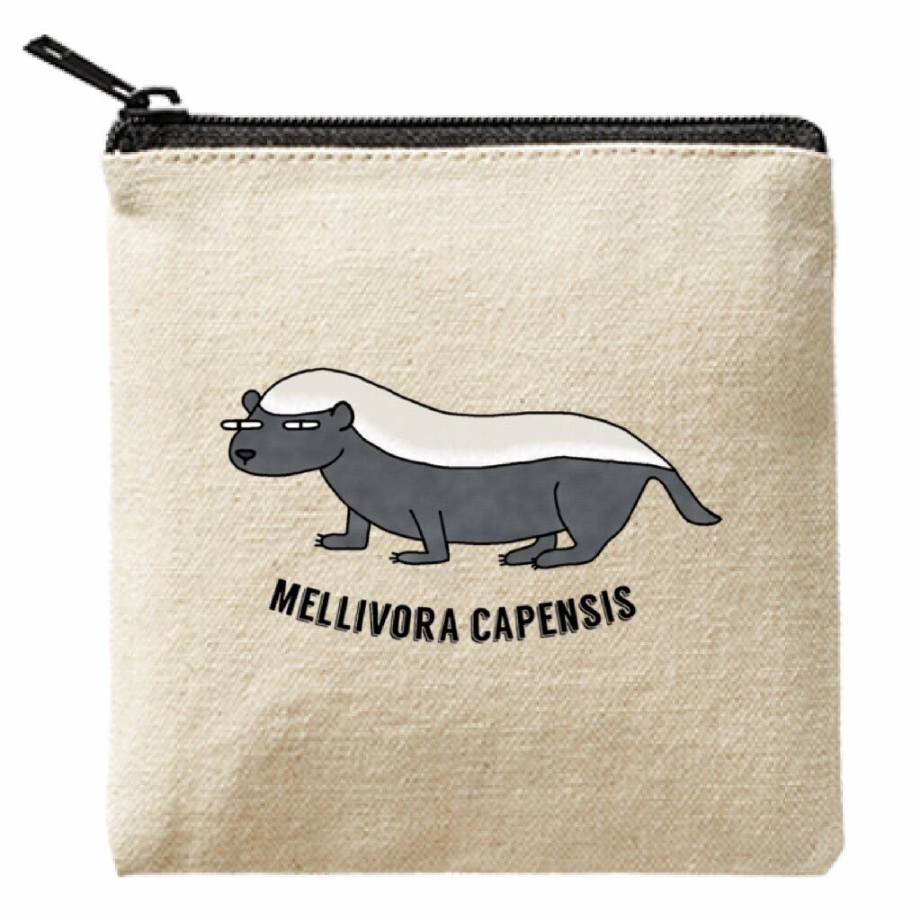 You'll absolutely love carrying this bold and unique design! Say hello to your new Honey Badger Pouch, featuring this incredibly tough and intelligent animal. We've added a special touch by including its scientific name, Mellivora capensis, right there on the design. Isn't it fantastic how highlighting that truly brings out the distinctive, fearless personality of this remarkable creature? It makes your pouch genuinely stand out.