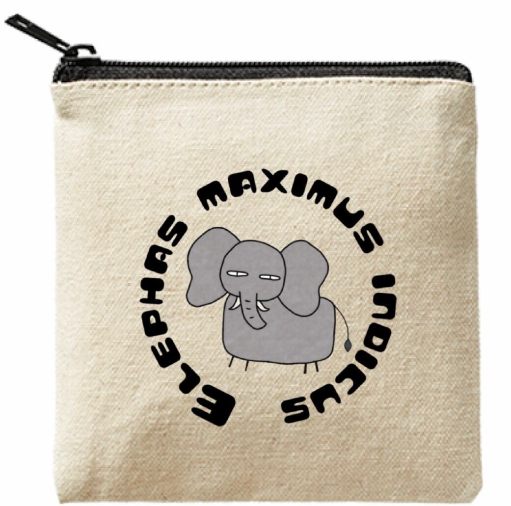 このポーチはインドゾウの可愛らしい絵柄と一緒に学名を英語表記しています。おしゃれで個性的なデザインは使うたびに笑顔がこぼれること間違いなし!プレゼントにも喜ばれること間違いありません。