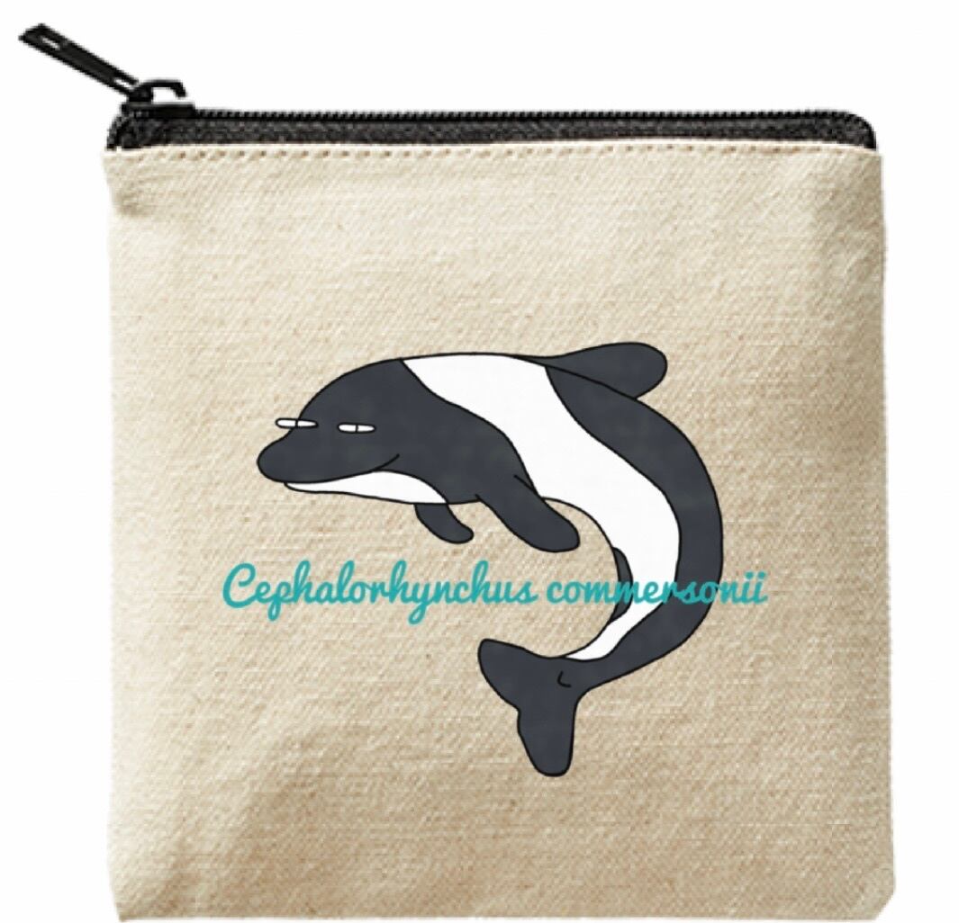 ライトキャンバス生地でできたこのスクエアポーチは、小さなアイテムを美しく収納できるサイズ感が魅力です。学名を英語表記しているので、おしゃれな雰囲気も演出できます。毎日のバッグの中や旅先での使い勝手も抜群!お出かけ時にかわいらしいイルカさんのポーチを持って日常に少しのハッピーをプラスしませんか?