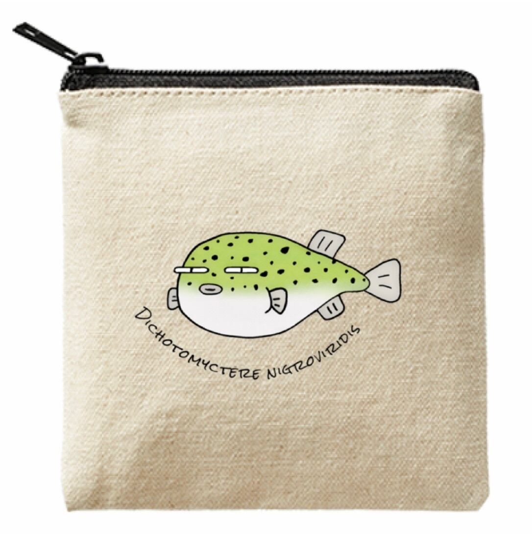 ミドリフグさんのポーチは、ライトキャンバス生地で作られたかわいい13cmのスクエアポーチです。学名を英語表記でプリントしたデザインは、おしゃれで知識も身につくポイント。身に着けるだけでちょっとしたおしゃれ感を演出できるアイテムです。