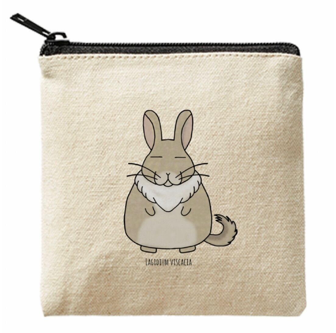 学名を英語表記したチリヤマビスカーチャさんのポーチ。ライトキャンバス生地を使用し、軽量かつ丈夫な作りが特徴です。13cmのスクエアポーチは、小さな荷物をしっかり収納できるサイズ感で、旅行やお出かけに便利です。ほっこりとした表情と、可愛らしいイラストがポーチを開くたびに微笑ましさを感じさせてくれます。持っているだけで癒しを与えてくれるアイテムです。