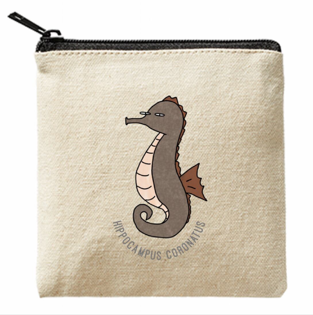 水の中を優雅に泳いでいるかのような姿が描かれた、タツノオトシゴさんのポーチ。