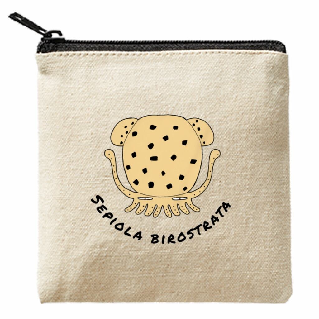 ダンゴイカさんのポーチは、ライトキャンバス生地で作られた13cmのスクエアポーチです。まんまるとしたフォルムがのダンゴイカさんが愛らしいポーチは、普段使いから旅行用まで幅広く活躍してくれます。さらに、学名を英語表記したオシャレなデザインがポイント!小物や化粧品など、大切なアイテムをしっかり収納できる大きさなので、いつものバッグの中でも使いやすいです。