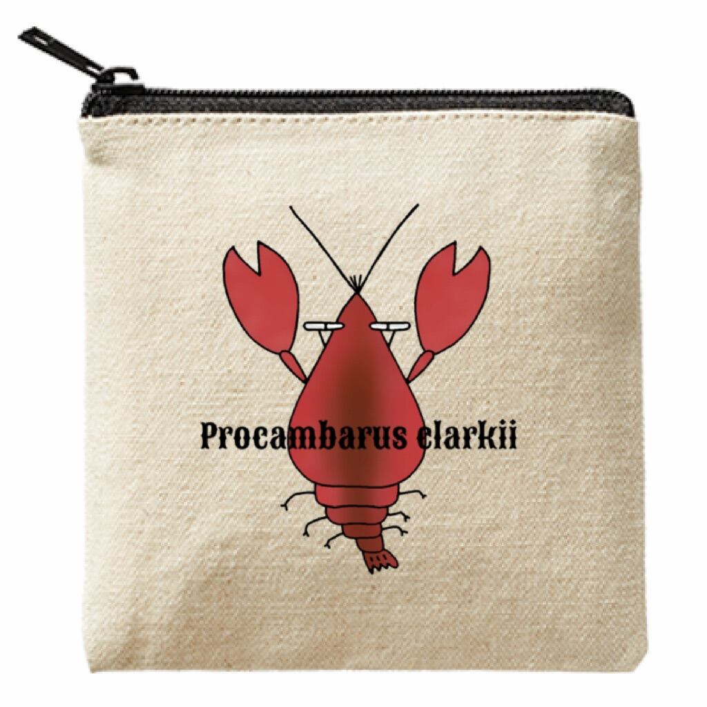 英語表記で学名が添えられ、まるで川辺に隠れているかのようなザリガニさんの独特の雰囲気を感じさせるこの可愛らしいポーチは、小物や化粧品の収納に最適。持ち運びも便利で、旅行や外出時に大活躍すること間違いなし!どんなシーンでも愛用していただけることでしょう。