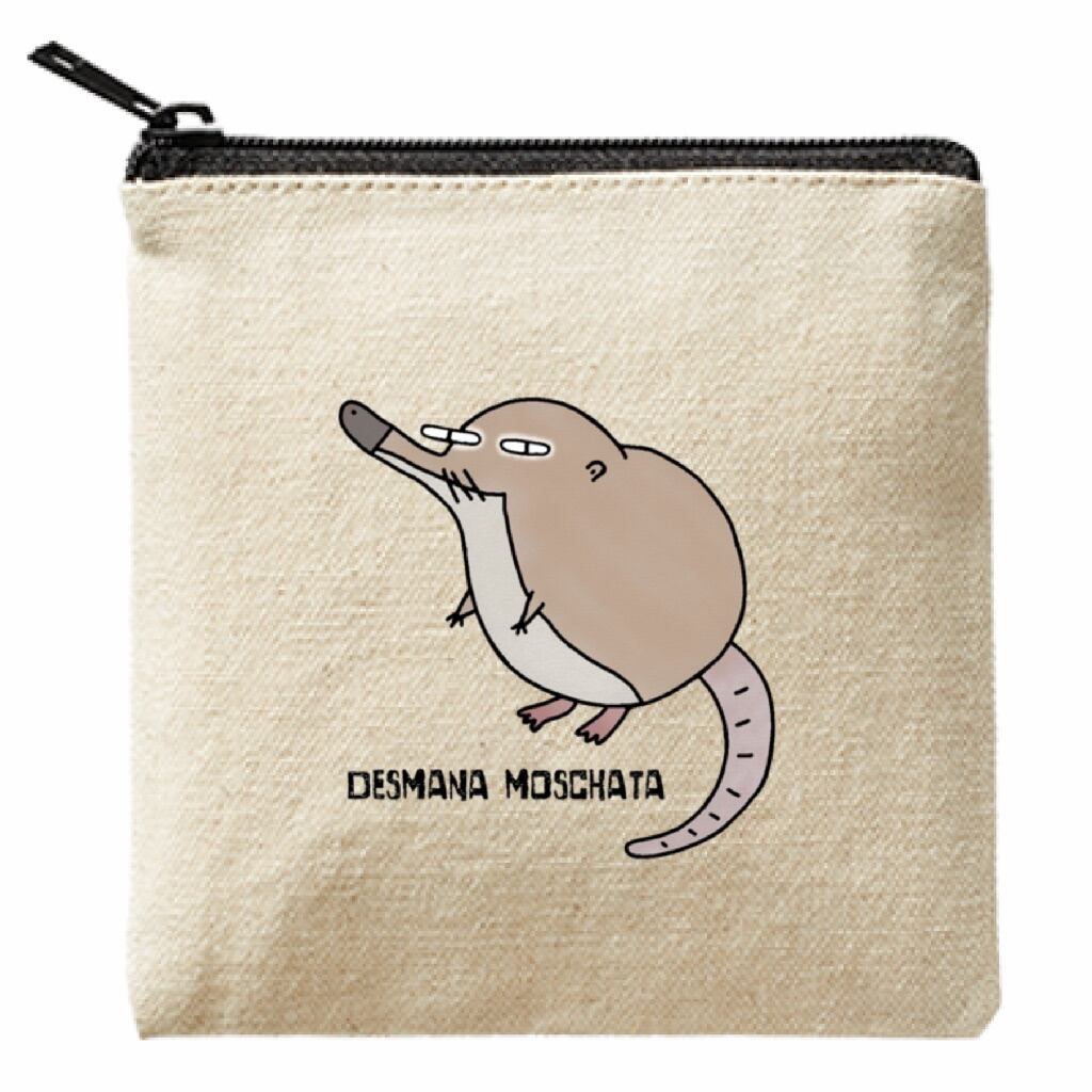 ライトキャンバス生地で作られた、ロシアデスマンさんのポーチ。