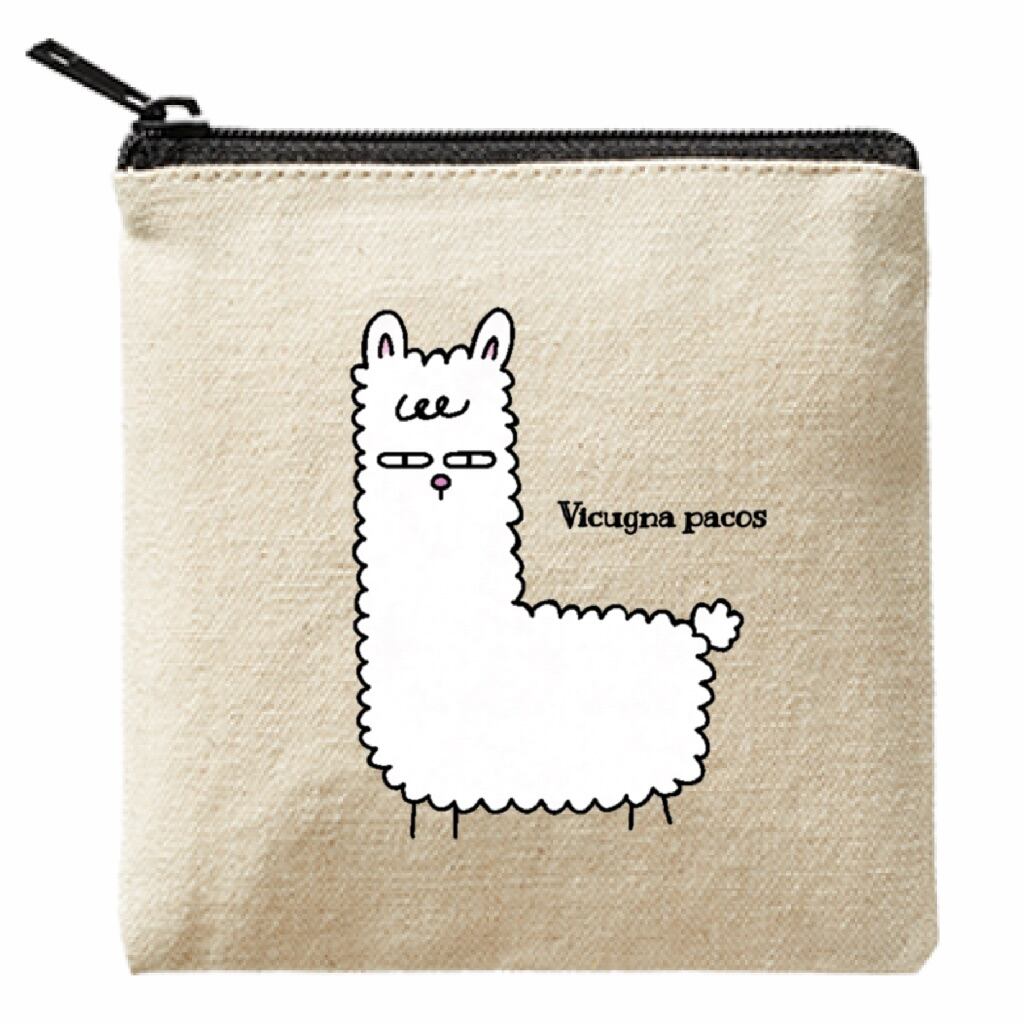 「アルパカさんのポーチ」は可愛らしい見た目が特徴の13cmのスクエアポーチです。ライトキャンバス生地で作られており、軽量で持ち運びも便利です。アルパカさんのもこもこ感が感じられる愛らしいポーチは、中に小物を収納するのにぴったり。学名を英語表記したデザインがさらにおしゃれさを引き立てます。