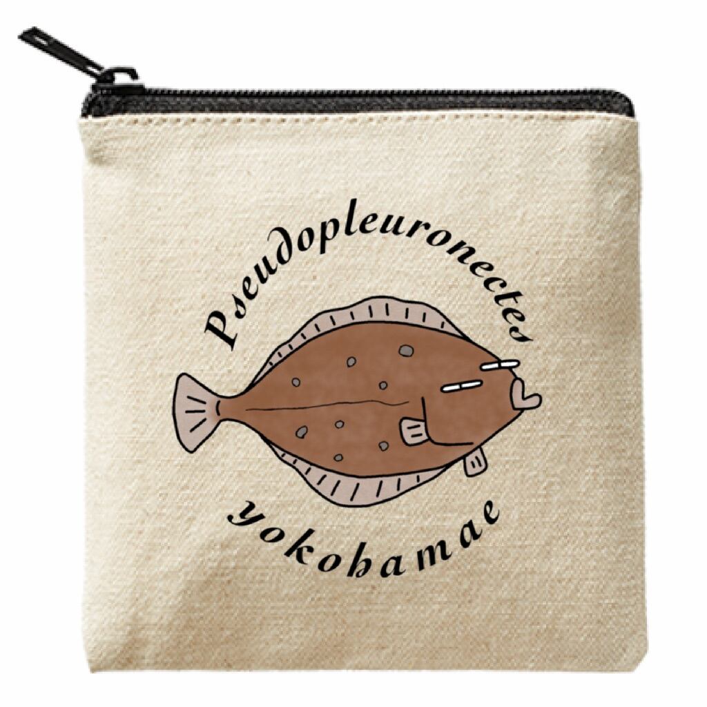 「マコガレイさんのポーチ」は軽量で丈夫なライトキャンバス生地を使用した13cmのスクエアポーチです。学名を英語表記したデザインは自然好きや科学好きの方にも喜ばれること間違いなし。小さなお子様から大人まで、どなたにもお使いいただけるサイズ感です。