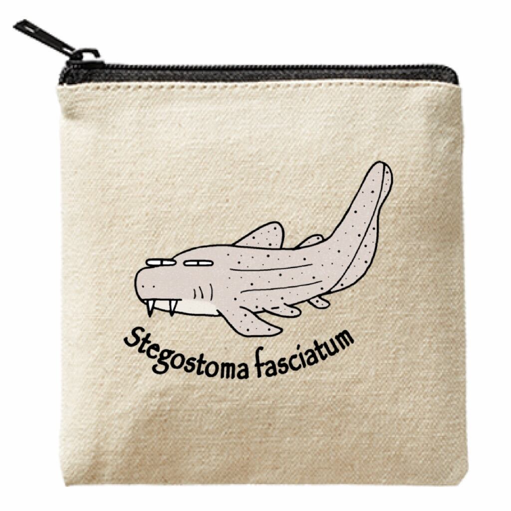 「トラフザメさんのポーチ」はライトキャンバス生地で作られた13cmのスクエアポーチです。ポーチの表面には、可愛らしいトラフザメさんのイラストが描かれています。学名も英語表記されており、サメ好きな方にはたまらない逸品でしょう。