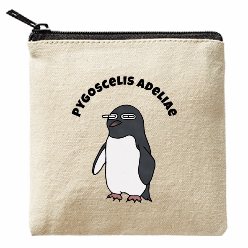 この可愛らしい「アデリーペンギンさんのポーチ」は軽量で丈夫なライトキャンバス生地で作られています。学名も英語表記されており、知識にも磨きをかけられる一品です。13cmのスクエアポーチなので、小物やコスメを収納するのにぴったりサイズです。